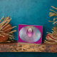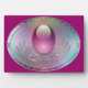 A pastel blue, lavender, and pink design with a translucent pink egg in a silver filigree setting, circled by a light silver oval frame set with four more smooth gems like colourful eggs.