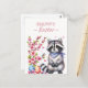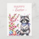 Easter postcard featuring a raccoon with cherry blossoms and Easter eggs. Customizable.