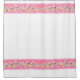 A White Shower Curtain For Easter Decor With Pink Boarder And Colorful Floral Rabbits