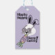 This groovy purple Easter hang tag features a sweet bunny surrounded by flower-power inspired, psychedelic details straight out of the 60s and 70s. Think bold color, playful curves, and that unmistakable peace-love-and-springtime energy. Personalizable with your name and short message on the back with plenty of room for something special and hand written.