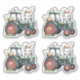 A sheet of 4 green rabbits driving a green tractor hauling Easter eggs to add to your kids Easter gift packages