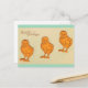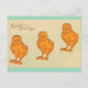 A vintage / antique Happy Easter postcard with three fuzzy yellow felt chicks all in a row. Background in beige. Happy Easter!