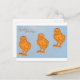 A vintage / antique Happy Easter postcard with three fuzzy yellow felt chicks all in a row. Background in blue. Happy Easter!