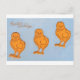 A vintage / antique Happy Easter postcard with three fuzzy yellow felt chicks all in a row. Background in blue. Happy Easter!