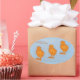 A vintage / antique Happy Easter postcard with three fuzzy yellow felt chicks all in a row. Background in blue. Happy Easter!