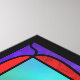 A stained-glass design illustrating Easter morning, with a red cross standing on green hills beside a fiery sunrise.
