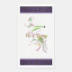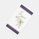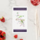 This standard guest towel napkin is shown, these have the same rich royal purple and black vine and scroll pattern, lavender border and Two Easter lilies in the centre over white background and text reading "He is Risen".