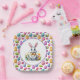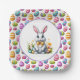 This cute paper plate is shown with a festive Easter eggs and bunny print.
