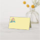 This folded name place card is shown in pastel yellow with a festive Happy Easter basket print.