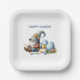 • Set of 8 durable paper plates featuring an adorable gnome painter and his chick helper decorating Easter eggs