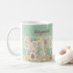 This pretty Easter mug features a patchwork of festive spring designs of Easter eggs, bunnies, wild flowers, and strips of white polka dotted pastel colors. The colors include pretty pale green, pink, mauve, yellow, and more...just right to welcome spring. This mug would be great Easter gift, or would be a whimsical touch and reminder of spring year round.