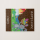 Colourful Easter bunny, basket, & house puzzle with personalized name for kids.