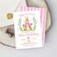 Easter girl birthday invitation features cute Rabbit with eucalyptus leaves and pink florals. This design is ideal for someone having a Rabbit themed birthday party.