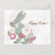 Easter Rabbit with Floral Overlay Holiday Postcard