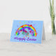 A rainbow arcs over brightly coloured lilies as hearts of many colours floar over the scene and wish you a Happy Easter. Very cute Easter design suitable for infant, toddler, and the young at heart.