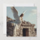 Easter Resurrection Greeting Card, with Angel sitting on the Tomb Stone. The sky around is full of light.