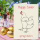 Happy Easter spring chicken an ideal card for chicken lovers. Simple farm hen dancing black line drawing with red detailing. A stylish minimalist art design for the poultry lovers in your life. Personalize this beautiful funny Easter greetings card by using the templates and delight you friends and family. Original artwork illustration by artist Catherine Sweetman.