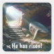 Empty tomb with rolled away stone door, glowing sunbeams, and folded linen cloth.