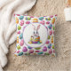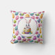 This throw pillow is shown with a cute festive Easter bunny eggs print.