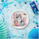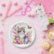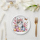 Paper plates featuring a kitten with cherry blossoms and Easter eggs. Customizable.