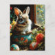 Easterbunny with painted eggs and flowers postcard
