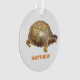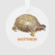 Create the perfect personalized holiday gift for fans of turtles when you add a name to this Christmas ornament. The ornament features a photo of an eastern box turtle, and is ready to be personalized with a name or other text below in bold orange lettering. The photo and text appear on both sides of this ornament.