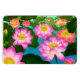 Original fine art painting of Asian lotus flowers by artist Carolyn McFann of Two Purring Cats Studio printed on a quality magnet for floral art fans.