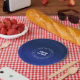 Easy Logo Replacement & Text | Dark Blue Gradient Paper Plate