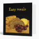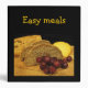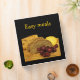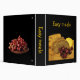 This Easy Meals recipe binder is decorated with a still life of an enticing display of freshly baked rye bread, yellow cheese and red purple grapes on a rustic wooden cutting board. The back has one delicious overflowing plate of grapes. The black background and gold text complete a cheerful, homey kitchen design. The text on front and spine is customizable to meet your needs.