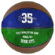 This keepsake basketball is regulation size and features her team's blue and green colours on two of the basketball's panels, upon which her name and jersey number plus school name, mascot name and sports year / season can be easily customized - the basketball's blue and green panels have a digitally-created textured appearance - by katz_d_zynes