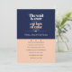 A modern wedding invitation in navy blue and peach colouring. The card is easy to customize with your wording, font and font colour. Not exactly what you're looking for? All our products can be custom designed to meet your needs at no extra charge. Simply contact us at askpixieprints@aol.com. Coordinating products available: Eat Cake Font RSVP cards. Want something else? Just ask us