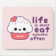 Cupcake with smiley face and the quote "Life is short, eat cupcakes often."
