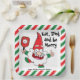 Cute Christmas pickleball paper plate with Santa playing pickleball on white background. Eat, dink and be merry