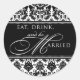 Eat, drink, and be married sticker, with an elegant damask patterned. Perfect for wedding favours and candy buffets! Be sure to check out my store for coordinating designs and other colour options!
