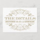 Elegant vintage inspired "The Details" wedding information enclosure card design. White and antique gold colours. Personalize the custom text with directions to your ceremony and reception venues, your hotel accommodations, wedding website, or other info for your guests. Features the "Eat, Drink, and Be Married" wedding quote.