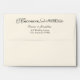 Custom wedding envelopes feature an elegant black return address text on the back flap with Eat Drink and Be Married typography design. Soft white / light ivory envelope colour can be customized.