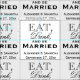A nostalgic vintage typographic design with script and plain type elements. Solid plain white background is pretty for a summer or outdoor wedding theme. Dine, have food, consume beverages, and me merry while participating in nuptials