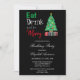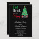 Eat, drink and be merry Christmas birthday invitation featuring a Christmas tree and gifts