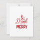 A simple in red typography of eat, drink and be merry holiday greeting cards for your loved ones.
