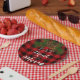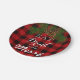 Eat Drink and be Merry, red tartan plaid,pine cone Paper Plate