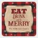 Eat Drink and Be Merry Rustic Red Plaid Christmas Square Sticker