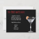This ghoulish invitation will have everyone dying to come to your Halloween bash! A classic martini glass full of yummy treats: someone's lost finger and a couple eyeballs for colour - is set against a black background. Matching postage is available.