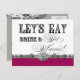 COLOR PALETTE: Fig, raspberry, grey, black & white. DESIGN COLLECTION: Elegant and fun fonts announce the message, "Let's eat, drink and get married!" on a delightful whimsical Bridesmaid invitation postcard. In a clean, crisp, fig, grey, black and white colour palette it's the best of vintage with a modern twist. Add your personal message on the reverse side. Made with a variety of fonts, including a circus poster style font, hand calligraphy font, swirls and vintage etched printer's decorative ornaments for a modern vintage style.