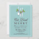 Ornaments of utensils, decked out with winter holly and tied with pretty little bows - a great design to invite guests to your home to "Eat, drink and be Merry!" this holiday season. With white elements, dark chocolate brown typography, on a soft aqua teal background.