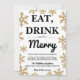 Eat Drink Be Merry Christmas Party Gold Snowflakes Invitation