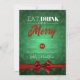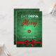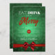 Eat, Drink Be Merry Green Bokeh Holiday Red Bow Invitation