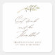 Eat Drink & Be Thankful Thanksgiving Leftovers Square Stickers in brown modern script font adorned with a watercolor herb branch. Personalize by adding your family name.