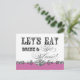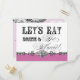 Elegant and fun fonts announce the message, "Let's eat, drink and get married!" on a delightful whimsical Bridesmaid invitation postcard. In a clean, crisp, honeysuckle pink, black and white colour palette it's the best of vintage with a modern twist. Add your personal message on the reverse side.