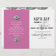 A beautiful, fun and inexpensive option for wedding programs. These will be shipped to you flat and you will need to fold them in 1/2 or most local print shops will do this for you at a nominal charge. Elegant and fun fonts announce the message, "Let's eat, drink and get married!" on a delightful whimsical Wedding Invitation Ensemble. In a clean, crisp, honeysuckle pink, black and white colour palette it's the best of vintage with a modern twist. The wedding program has the text and your names with your wedding date as well as your favourite quotation, scripture or? on the back side. The interior is set up for you to customize. If you need assistance on this there is a small charge for the service, just email us. There is a complete suite of products available with this design and we can do it in any colour combination(s) you desire.