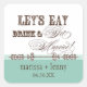 Elegant and fun fonts announce the message, "Let's eat, drink and get married!" on a delightful whimsical Wedding Invitation Ensemble. In a clean, crisp, aqua blue, chocolate brown and white colour palette it's the best of vintage with a modern twist. The sticker or seal has the text and your names with your wedding date. There is a complete suite of products available with this design and we can do it in any colour combination(s) you desire.